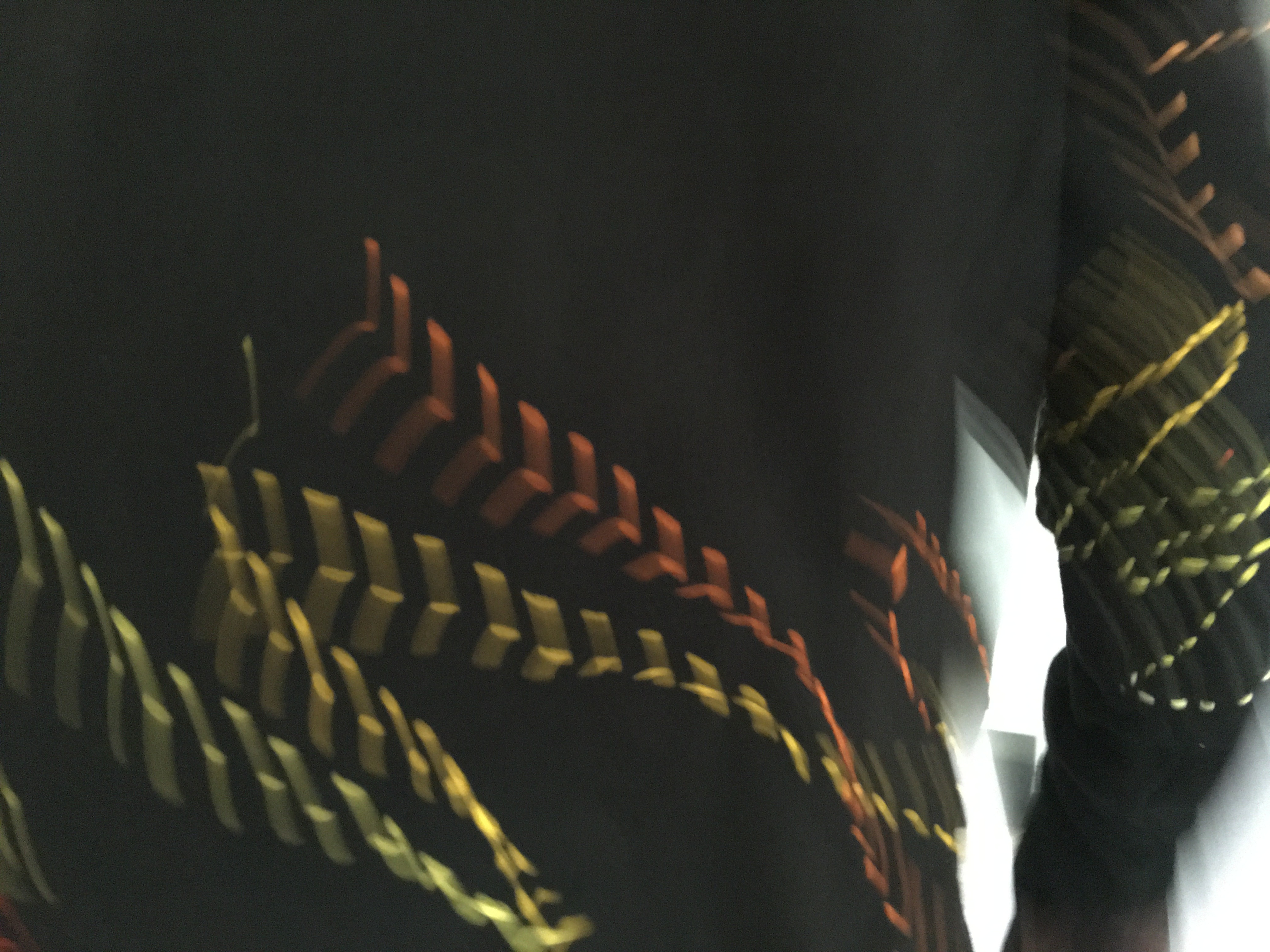 Black, white, yellow embroidery.
